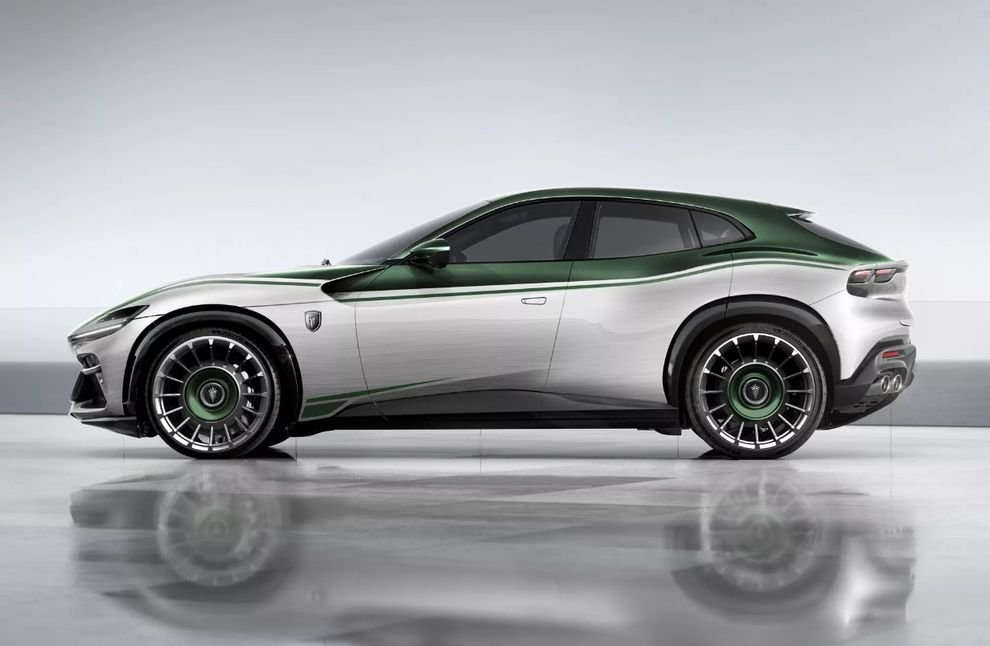 Наконец, Ferrari Purosangue от Carlex дополнен легкосплавными дисками со спицами, которые украшены крупным логотипом Carlex и дополненными зелёными вставками по центру. Именно таким Carlex видит идеальный Purosangue, хотя возможно вам покажется, что это перебор.