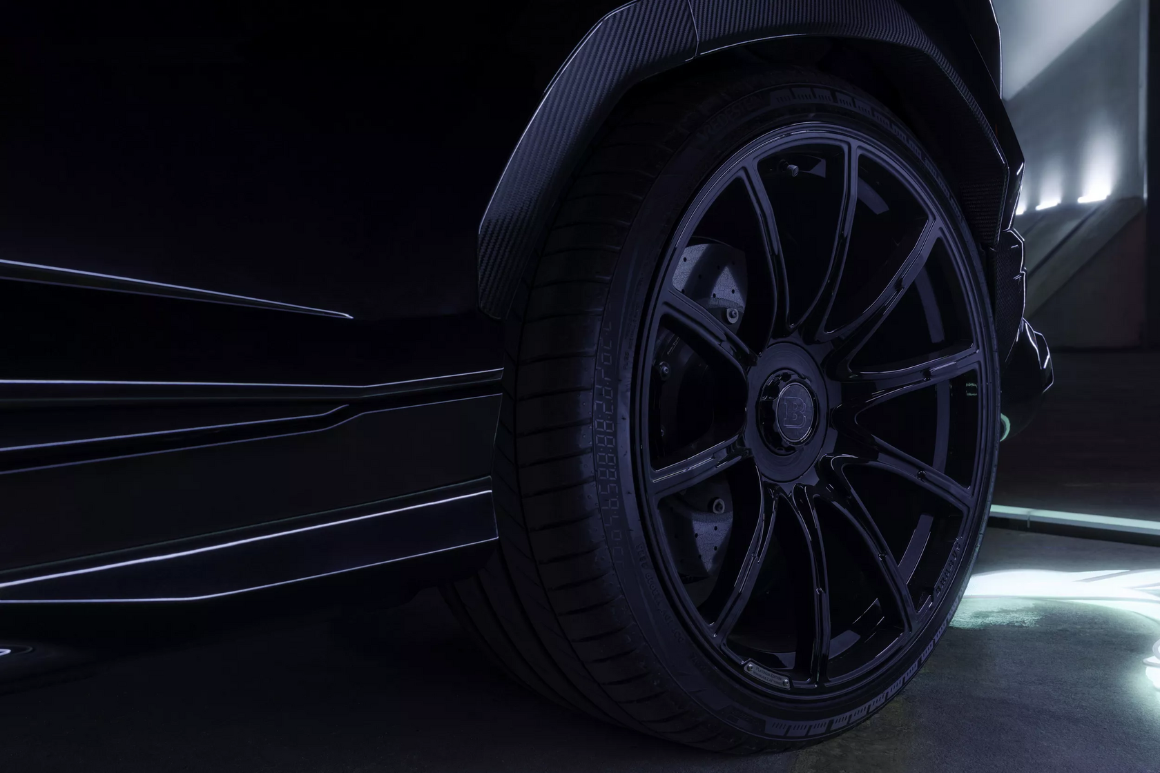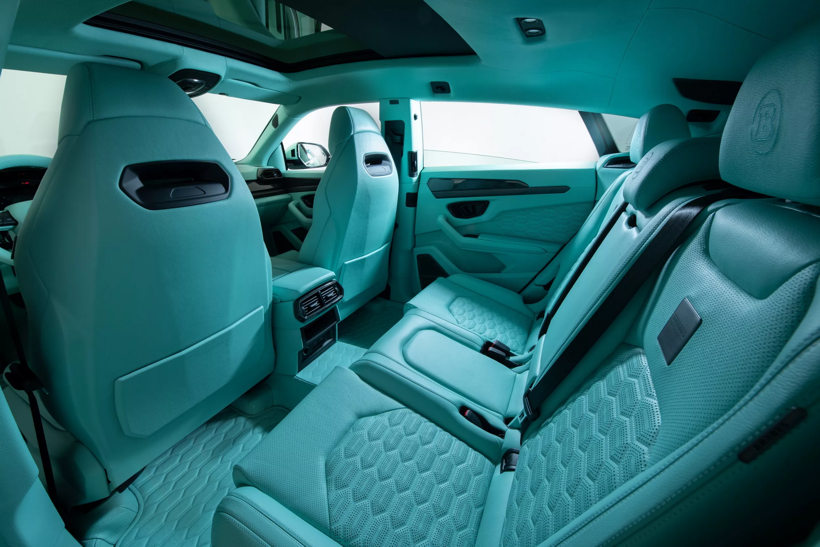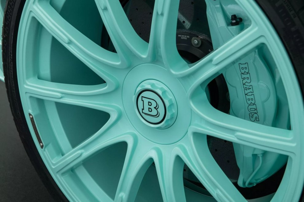 Впрочем, внешние доработки, по меркам Brabus, выполнены довольно сдержанно. Среди них новый передний сплиттер, переделанные воздухозаборники, расширенные накладки на крыльях, увеличенный спойлер и задний диффузор с четырьмя выхлопными патрубками. На Superblack все эти элементы выполнены из карбона, а на Mint – окрашены в цвет кузова. Низкая посадка обеспечена модулем SportXtra, опускающим клиренс на 20 мм. А под колёсными арками расположились монументальные 24-дюймовые кованые диски Monoblock Z.