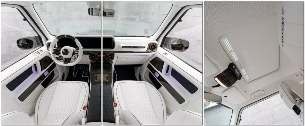 Внутри Mansory не изменяет себе: кресла, дверные панели и приборная панель затянуты в мягкую белоснежную кожу высшего качества, с контрастной чёрной строчкой. И конечно, повсюду вкрапления того самого карбона, чтобы никто не забыл, в чьей мастерской родился этот шедевр. Задние пассажиры получают не просто диван, а два капитанских кресла, разделённых массивной консолью с возможностью индивидуальной настройки.