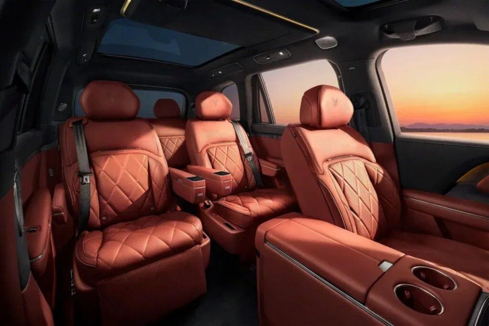 Незабываемые впечатление формирует салон, который можно сравнить с мобильными премиум‑апартаментами. Шестиместный интерьер отделан кожей и алькантарой, а комфорт пассажиров второго ряда возведён в абсолют. Кресла оснащены интеллектуальной системой с 66 (!) датчиками. Она автоматически подстраивает форму и надувные элементы под анатомию человека, предлагая многоточечный массаж и «режим невесомости». Для развлечения предусмотрен откидной потолочный экран диагональю 21,4 дюйма, персональные цифровые пульты, аудиосистема с 32 динамиками и центральная консоль со встроенным холодильником, способным как охлаждать, так и подогревать напитки.