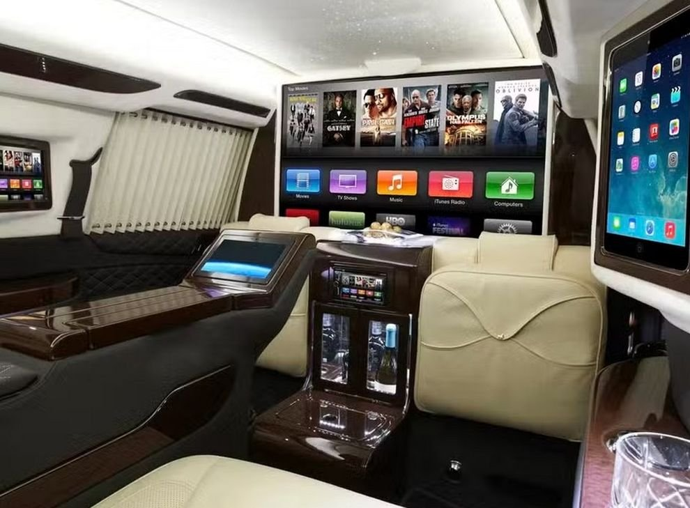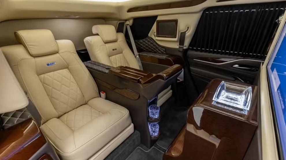 Идея проста и гениальна: взять за основу Cadillac Escalade, одеть его в агрессивный милитаристский костюм, добавить всё для выживания в зоне боевых действий и дополнить это баром с закусками и представительскими креслами с массажем. Получается гибрид танка и люксового лаунжа. Машина для тех, кто хочет руководить сражениями, не отрываясь от просмотра сериала на выдвижном экране.