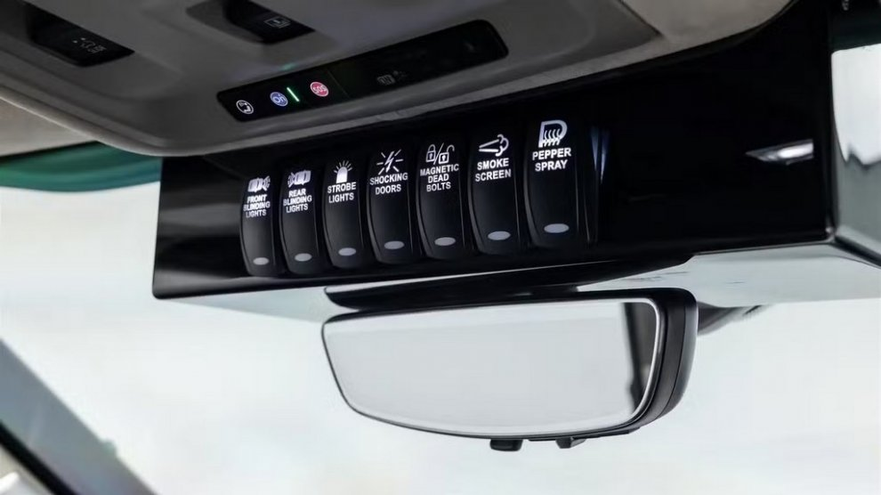 Под капотом этого танка знакомый 6.2-литровый бензиновый V8 или турбодизель. Но суть не в мощности, а в оснащении. Электрифицированные дверные ручки, таранящие бамперы, система защиты от электромагнитных импульсов, бронестёкла и усиленная защита днища от подрыва – это обязательный набор. К нему прилагаются противогазы и набор для помощи при переохлаждении. Вишенкой на торте – опциональная система обнаружения взрывных устройств.