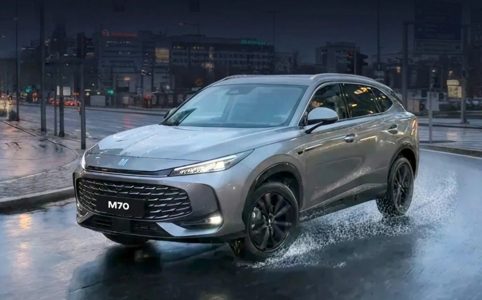 Москвич М70 – пятиместный кроссовер с габаритами 4 655×1 890×1 664 мм и колёсной базой 2 765 мм. Он заметно крупнее знакомого нам «Москвича 3». Узкая оптика, большая фальшрадиаторная решётка и корма со сплошной световой полосой. В салоне два 12,3-дюймовых дисплея, объединённых в единый блок. Багажник – 507 литров. По технике предложат два варианта: базовый 1.5-литровый турбомотор (150-172 л. с.) в паре с 7-ступенчатым роботом, либо топовый 2-литровый агрегат на 200-231 л. с., работающий с 9-диапазонным автоматом. Привод на старте продаж – только передний, хотя полноприводные версии М70 обещают чуть позже. Уже в базе у кроссовера будет ABS, ESC, функция контроля давления в шинах, крепления ISOFIX, система автоматической парковки, помощи при старте в гору и навигация, парктроники, электростеклоподъёмники, электрорегулировка и обогрев зеркал, четыре динамика аудиосистемы, кондиционер и так далее. Прогнозируемая стоимость – от 3 до 3,5 миллионов рублей.