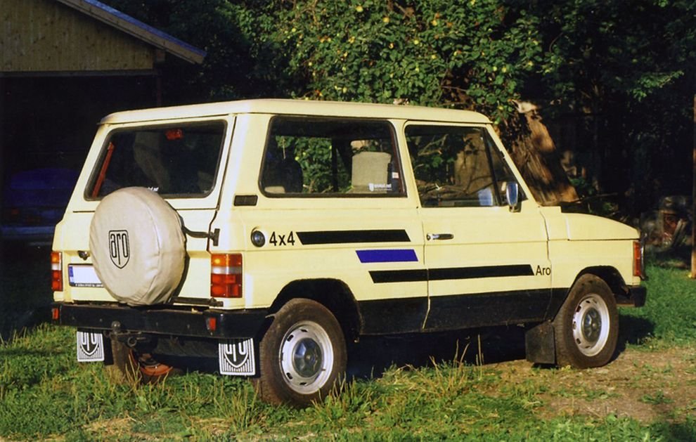 Несколько аномально на этом фоне смотрелась румынская альтернатива «Ниве» – ARO серии 100 (1980). Созданная на основе узлов и агрегатов легковой Dacia 1310 (лицензионный Renault 12), она оснащалась съёмным или мягким верхом, откидным лобовым стеклом и вполне легковым комфортом. Подвеска – пружинная полностью независимая. Двигатели первоначально 1.3/1.4 литра мощностью 54/62 л. с., рулевое – реечное, тормоза – дисковые на всех колёсах. Любопытно, что на экспорт серия 100 шла как Dacia Duster, но в отличие от нынешнего румыно-французского кроссовера ARO был полноценным внедорожником с рамой, жёстко подключаемым полным приводом и понижающей передачей в раздаточной коробке.