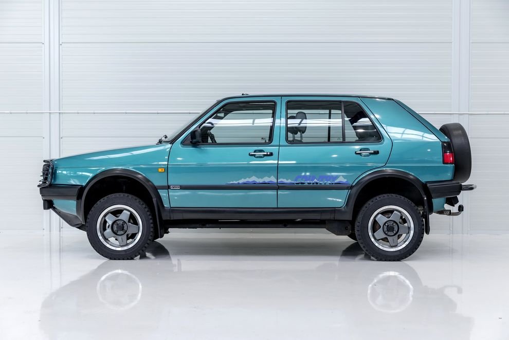 Второй внедорожной модификацией обычного автомобиля Volkswagen стал Golf Country, который кроме полного привода с виско-муфтой и блокировками дифференциалов, получил подрамники, мощную защиту картера двигателя, крепление для запасного колеса сзади и штатный кенгурин. Всё это добавило модели триста килограмм, так что её масса в снаряжённом состоянии составила 1 245 кг. Двигатель на Golf Country ставили объёмом 1.8 литра и солидной для того времени мощностью 98 л. с. Выпустили таких «супергольфов» совсем немного – за два года, с 1990-го по 1991-й, собрали около 7,7 тысячи экземпляров.