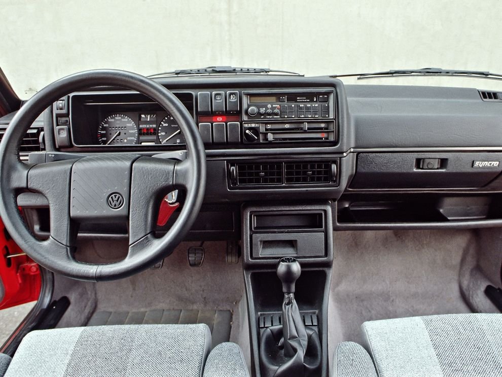 Первым стал полноприводный Transporter Syncro 16 (позже Syncro 4×4), появившийся в 1985 году. Он представлял собой обычный лёгкий микроавтобус с расположенным сзади мотором-оппозитом жидкостного охлаждения, который дополнили передним ведущим мостом, подключавшимся при помощи виско-муфты. Но самое интересное, что внедорожник комплектовали блокировками межколёсных дифференциалов. А довершали портрет колёса на 16-дюймовых дисках, вместо стандартных 15-дюймовых, усиленный кузов и при желании – кенгурином. Подвеска – полностью независимая рычажно-пружинная, рулевое управление – реечное. Двигатели – бензиновые оппозиты объёмом 1.9 литра (78 л. с.), 2.1 литра (92 л. с.), а также 1.7-литровый дизель мощностью 57 л. с.
